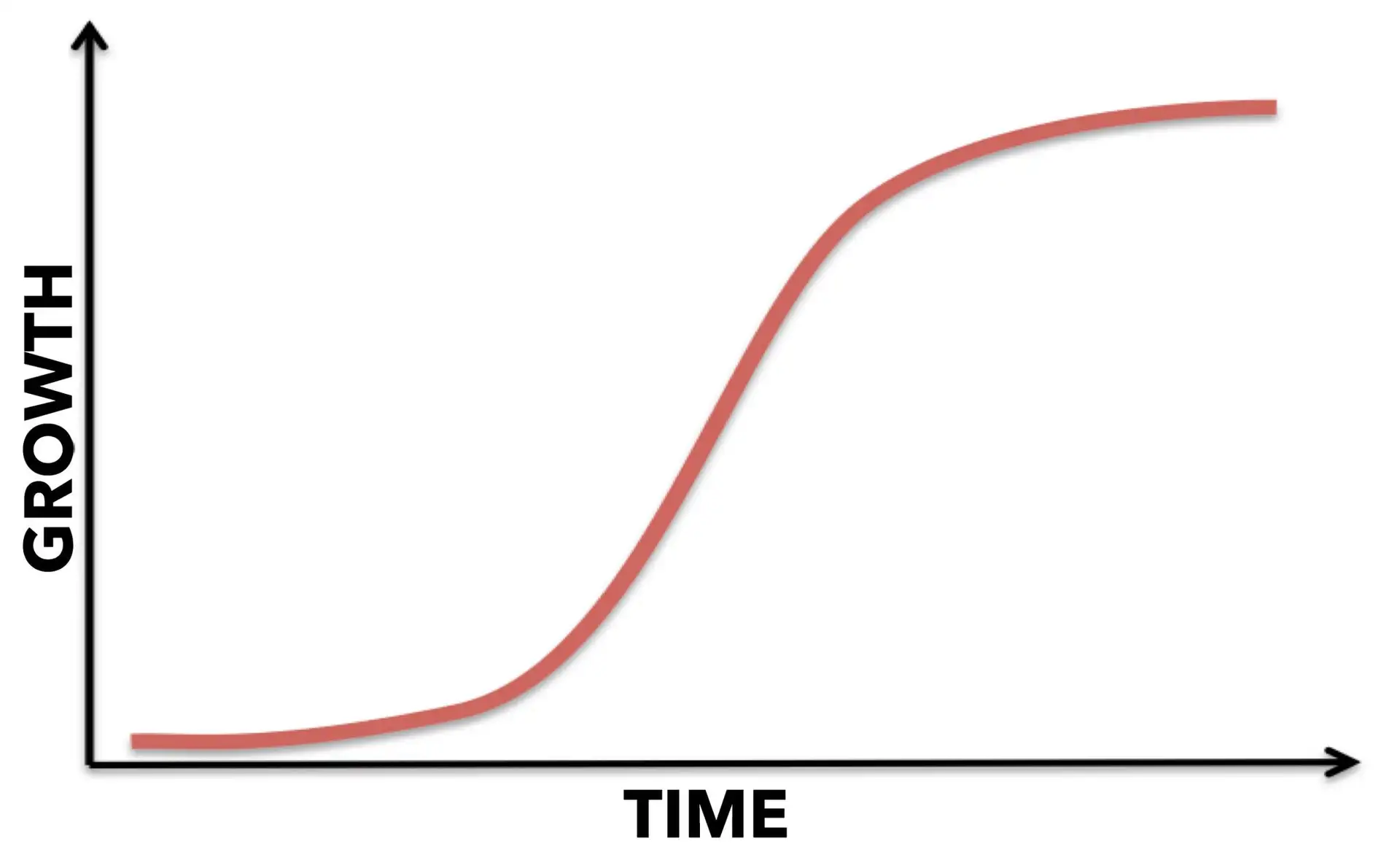 เมื่อเป็นแบบนี้ การเติบโตของเพจหรือแอคเคาท์ของเราจะเป็น S-Curve โดยที่แกน X คือเวลา และแกน Y คือการเติบโต (จำนวนผู้ติดตาม)