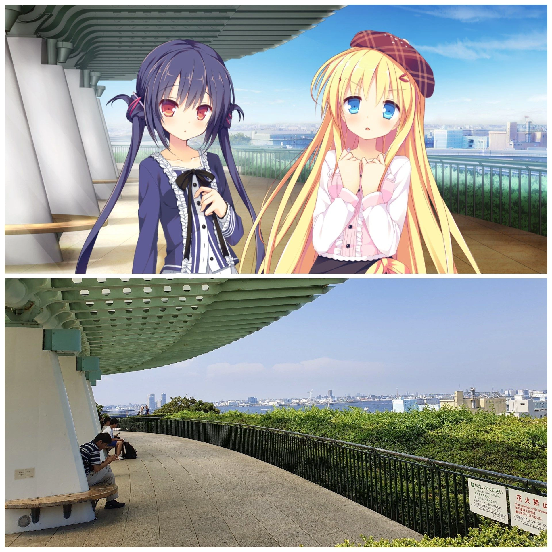 นอกจากสวนแห่งนี้แล้ว สถานที่เกือบทั้งหมดที่ปรากฏในเกม ไม่ว่าจะเป็นถนนตรอกซอย สวนสนุก โบสถ์ รวมถึงบ้านพระเอกล้วนมาจากสถานที่จริงในเมืองโยโกฮาม่าครับ